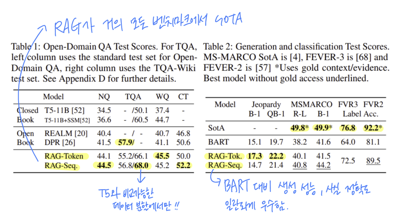 - RAG는 기존 모델들과 달리, 검색된 문서에 대한 감독 없이 학습함