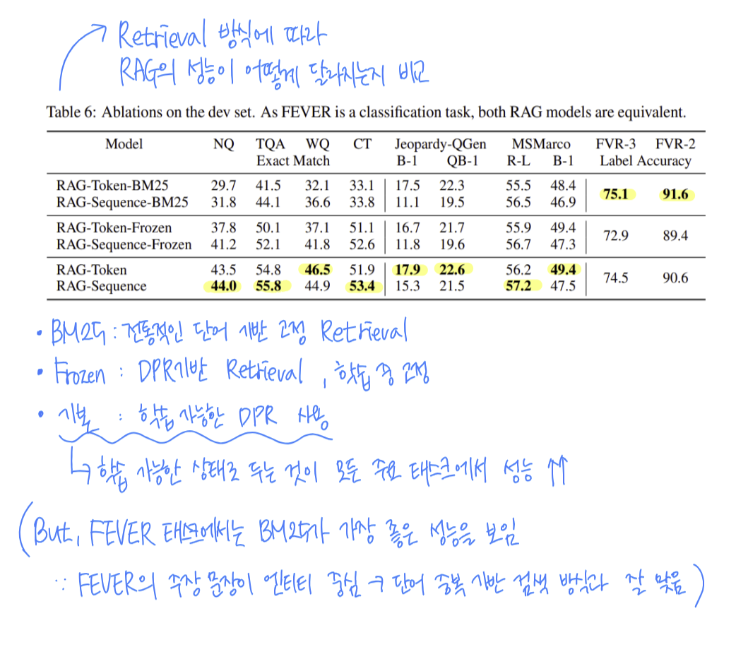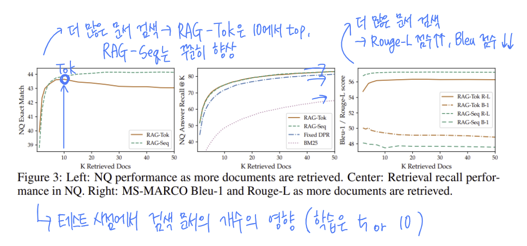 - 파인튜닝 : 문서 인코더와 색인은 고정하고, 쿼리 인코더와 BART만 파인튜닝