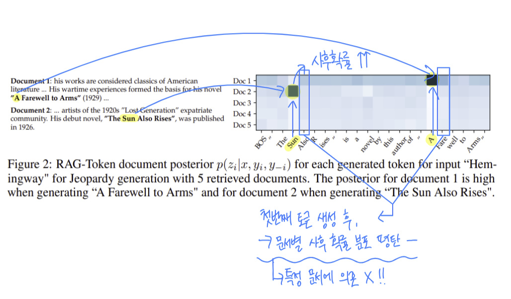 - (2) RAG-Token : 각 단어 토큰마다 다른 문서를 참고하여 생성 가능