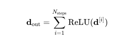 - Decision aggregation 수식 : 각 step의 결과를 다 더한다. ReLU를 사용하여 d[i]값이 음수일 때는 제거, 양수일 때만 기여로 인정한다.